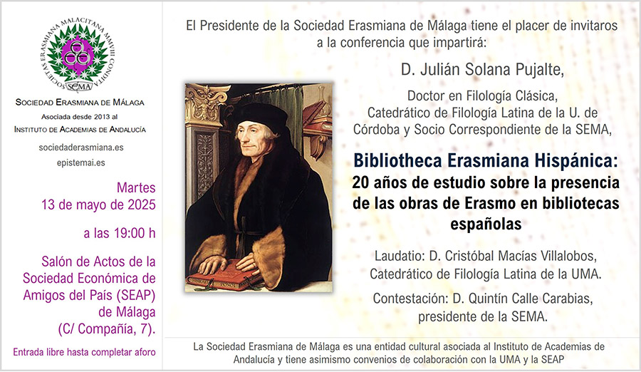 Presenta: D. Quintín Calle Carabias, Presidente de la Sociedad Erasmiana de Málaga.