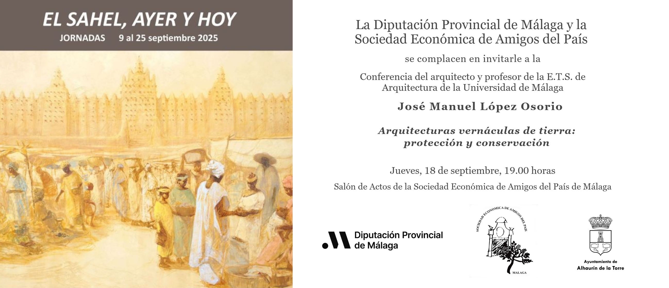 Arquitecturas vernáculas de tierra: protección y conservación, a cargo de D. José Manuel López Osorio, arquitecto y profesor de la E.T.S. de Arquitectura de la Universidad de Málaga.