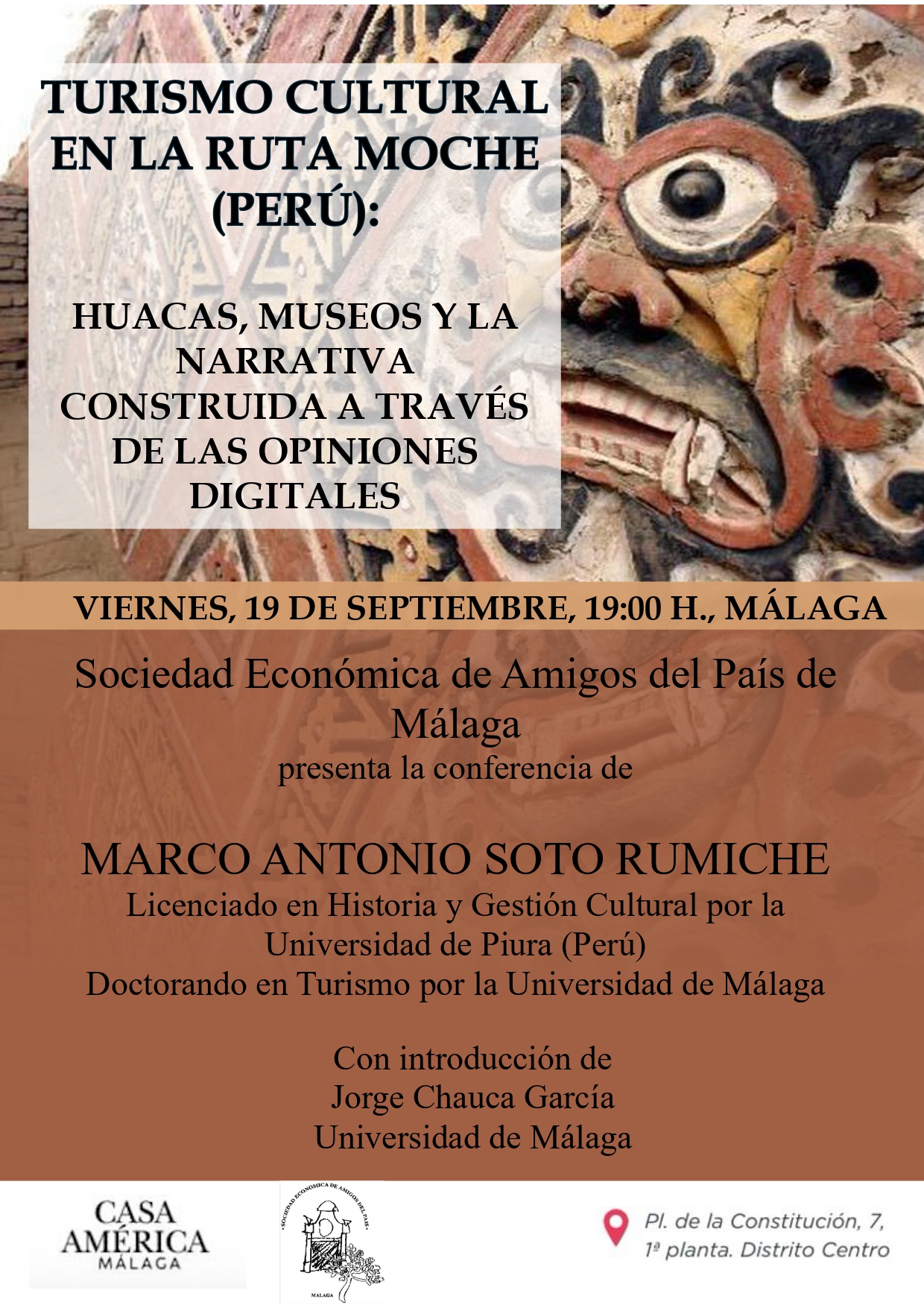 Turismo cultural en la Ruta Moche (Perú): huacas, museos y la narrativa construida a través de las opiniones digitales, a cargo de D. Marco Antonio Soto Rumiche, Licenciado en Historia y Gestión Cultural por la Universidad Piura (Perú) y Doctorando en Turismo por la Universidad de Málaga.