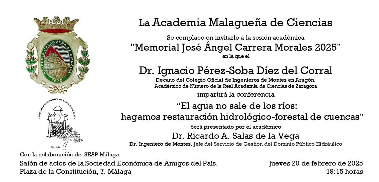 La corrección hidrológico-forestal de la cuenca del río Guadalmedina, a cargo de D. Ricardo A. Salas de la Vega, Académico de Número de la Academia Malagueña de Ciencias.