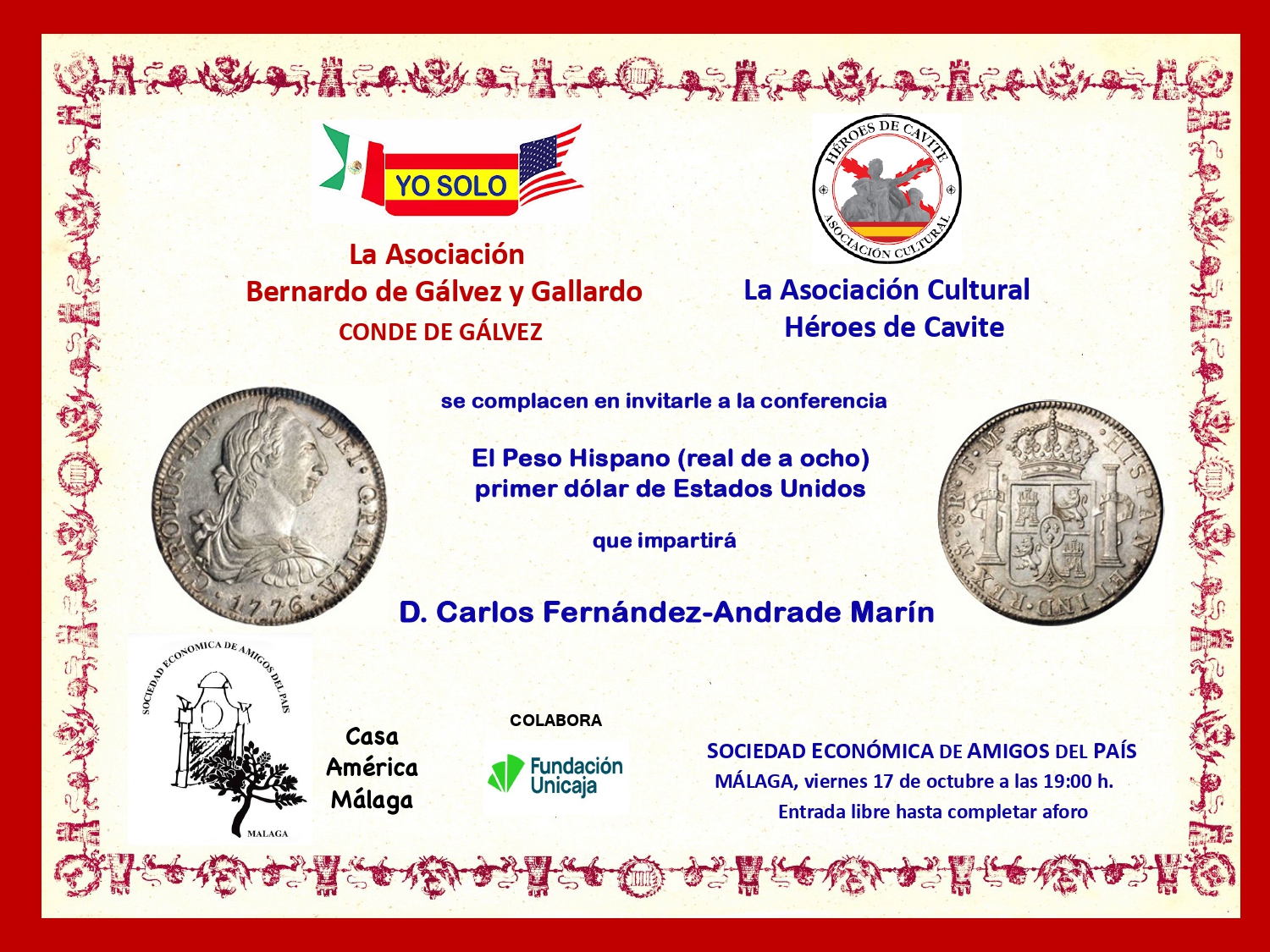 El Peso (real de a ocho) primer dólar de Estados Unidos, a cargo de D. Carlos Fernández-Andrade Marín, Licenciado en Historia Moderna y Contemporánea, Comunicación y Derecho.