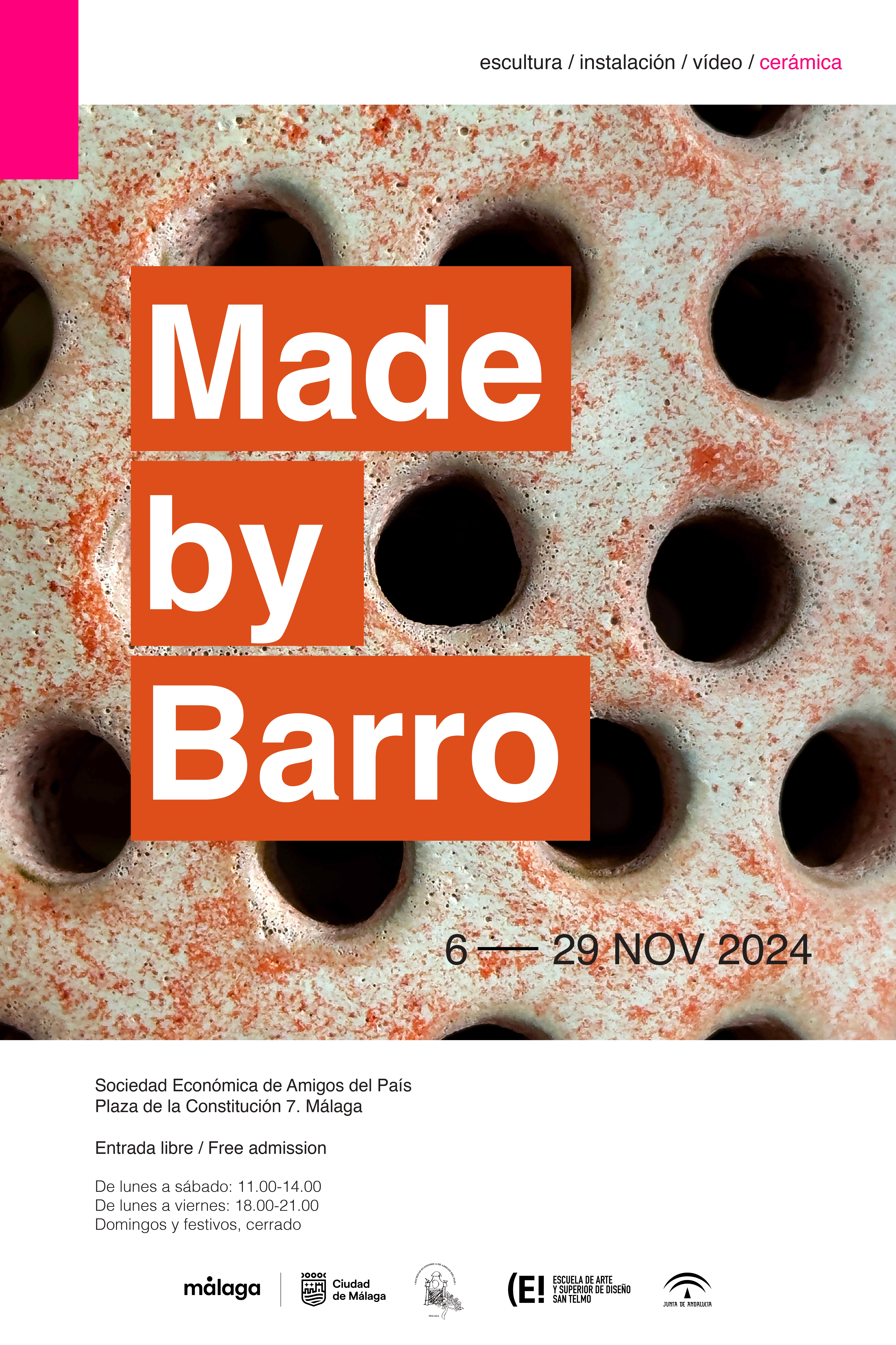 El Ayuntamiento de Málaga, a través del Área de Cultura y Patrimonio Histórico, coorganiza la exposición ‘Made by Barro’. La muestra, que se exhibe en la Sociedad Económica de Amigos del País (SEAP), está compuesta por obras realizadas por el alumnado de los ciclos de Cerámica y Alfarería de la Escuela de Arte y Superior de Diseño de San Telmo. En total, se podrán ver 18 piezas - 15 individuales y 3 colectivas- realizadas por 21 alumnos de la escuela.