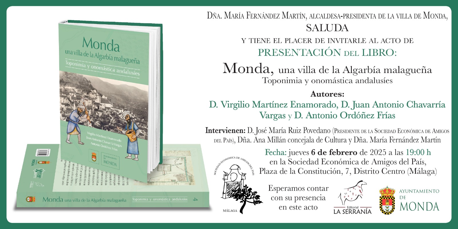 La documentación colonial relativa a los Repartimientos y Apeos, mudéjares y moriscos, del antiguo Reino de Granada (ss. XV-XVI) nos brinda una excepcional oportunidad para reconstruir los paisajes campesinos andalusíes y su ulterior transformación por parte de los colonos castellanos asentados allí tras la conquista. A partir de la toponimia patrimonial, de la onomástica familiar y de datos sobre cultivos, caminos y asentamientos humanos, esos territorios pueden ser escudriñados hasta el más mínimo detalle. En el caso de Monda, una pequeña villa de la Algarbía malacitana, esa información es sumamente exhaustiva pues cuenta con tantísimos datos contenidos tanto en su Repartimiento de 1492 como en su Apeo de los bienes moriscos de 1572, por lo que una obra como esta, Monda: una villa de la Algarbía malagueña. Toponimia y onomástica andalusíes, rinde cumplida justicia a su historia y a aquellos pobladores moriscos que, expulsados de sus lares, dieron nombre a tantos lugares que hoy mantienen su antigua, transformada, denominación.