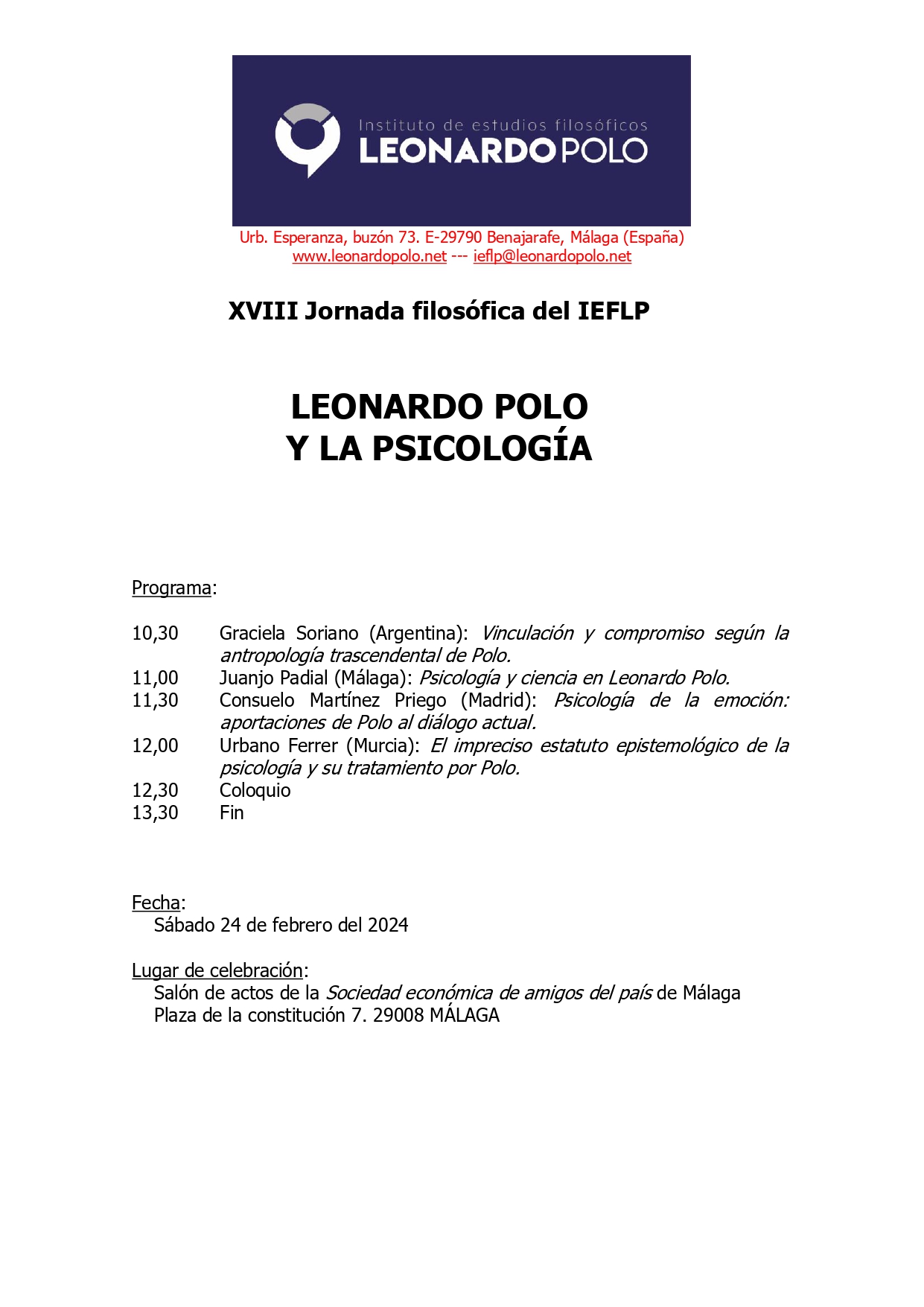 XVIII Jornada filosófica del IEFLP, Leonardo Polo y la Psicología.