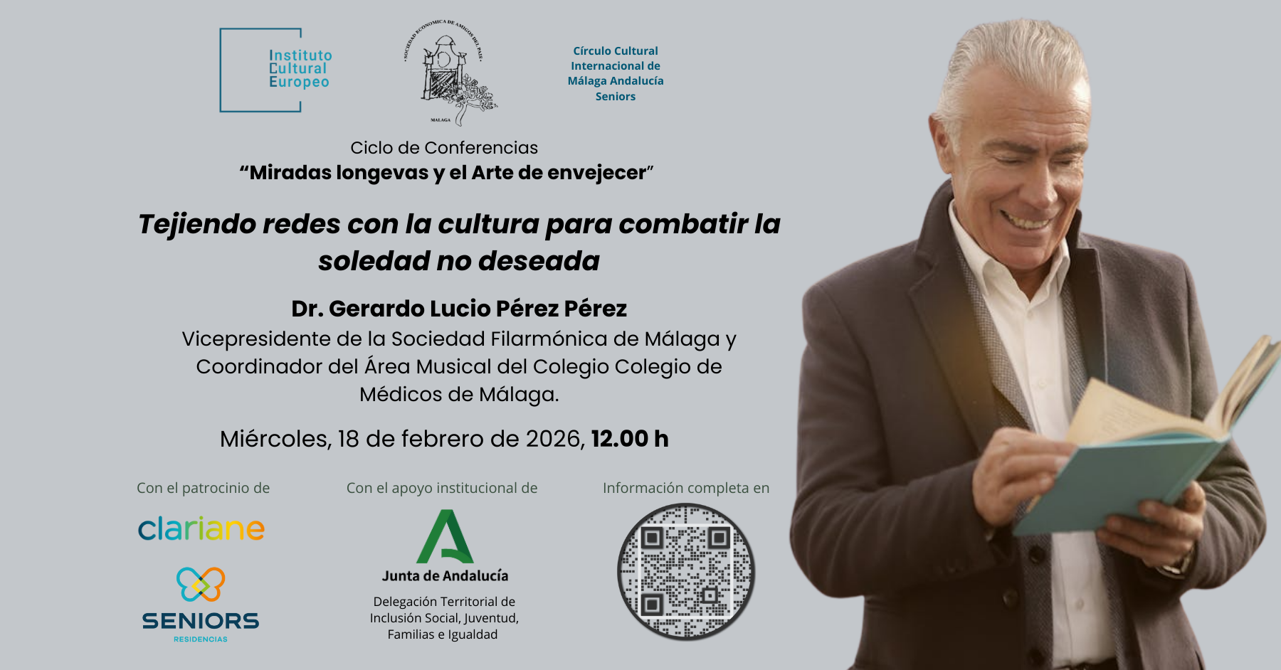 Tejiendo redes con la cultura para combatir la soledad no deseada, a cargo de D. Gerardo Lucio Pérez Pérez, Vicepresidente de la Sociedad Filarmónica de Málaga y coordinador del Área Musical del Colegio de Médicos.*