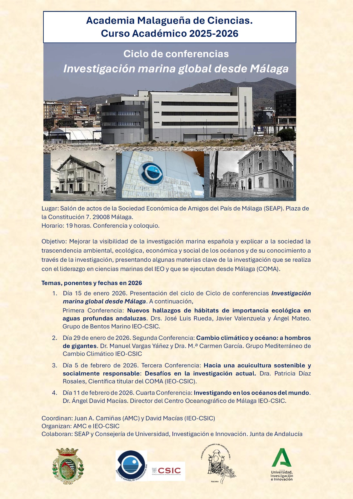 Organizan: Academia Malagueña de Ciencias e IEO-CSIC.