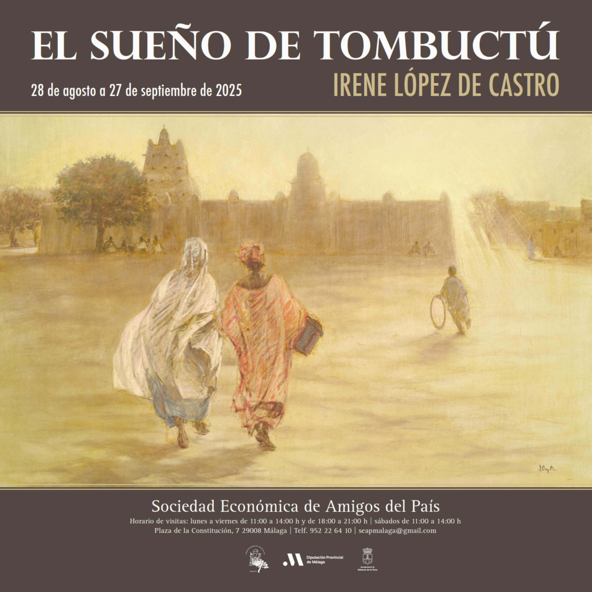 En el marco de esta exposición —organizada junto a la Diputación de Málaga—, la Sociedad Económica Amigos del País ha editado un catálogo y ha programado durante el mes de septiembre una serie de jornadas académicas con el título “El Sahel ayer y hoy”, a través de las cuales el público podrá saber más sobre la Historia entre Al-Ándalus y Tombuctú y la Arquitectura sudanesa.