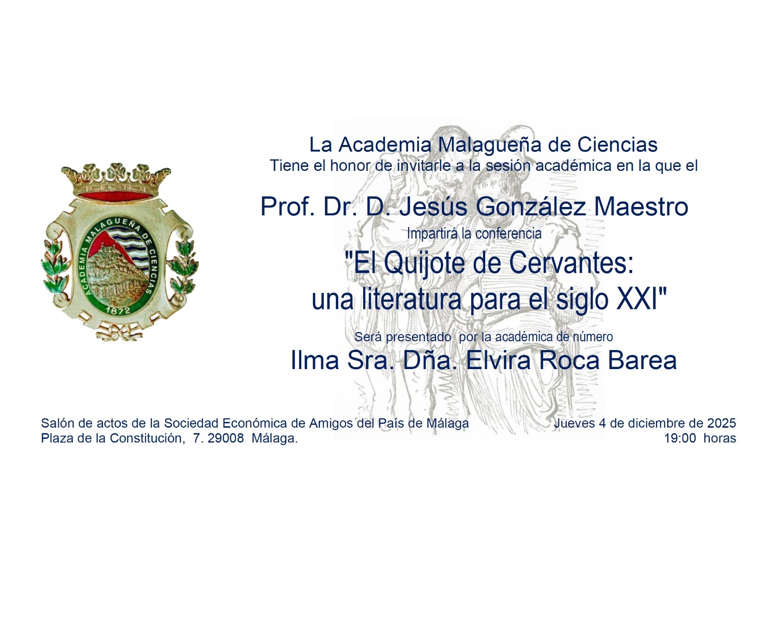 Presenta: Dña. Elvira Roca Barea, Académica de Número de la Academia Malagueña de Ciencias.
