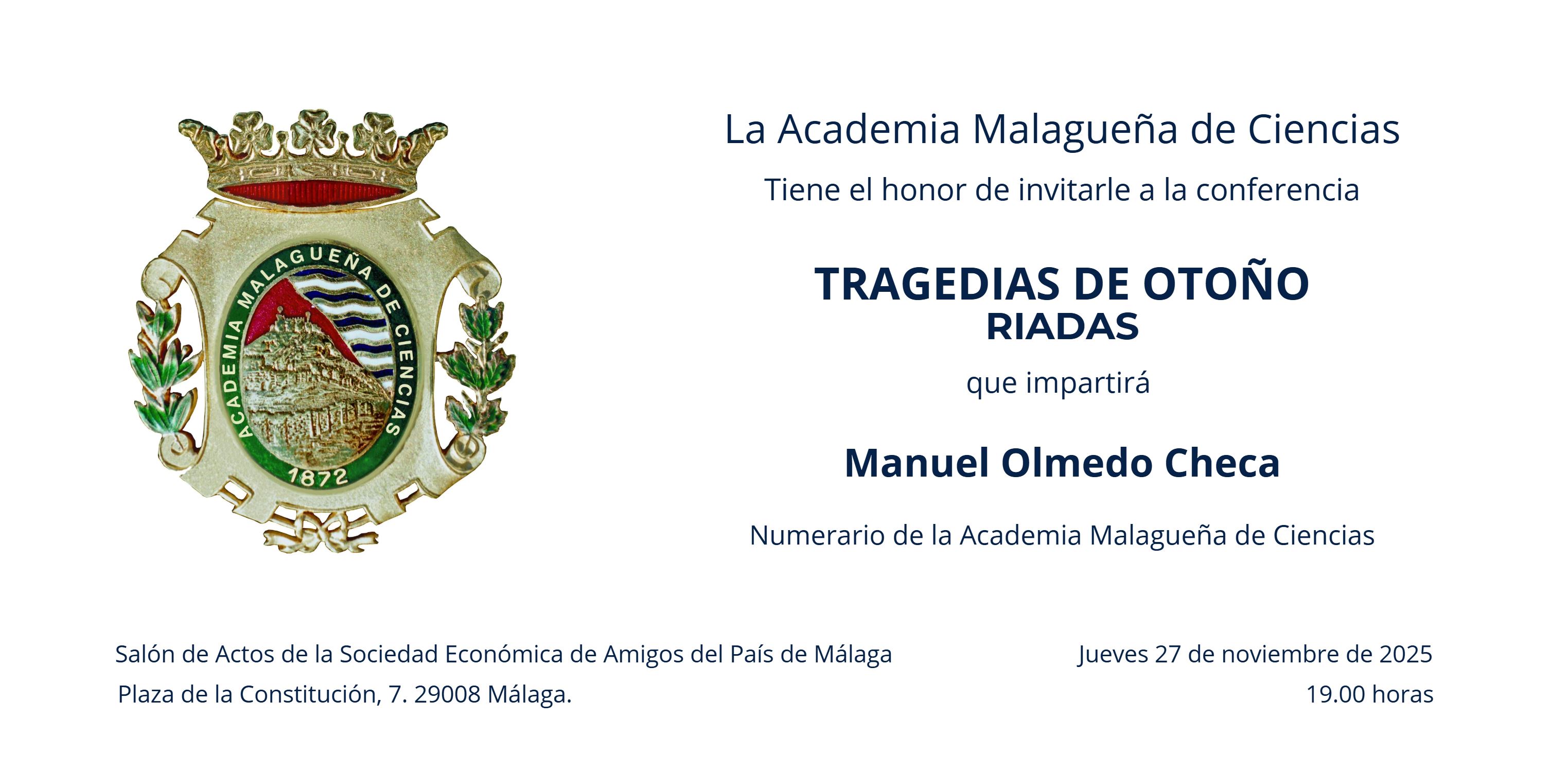 Tragedias de otoño. Riadas, a cargo de D. Manuel Olmedo Checa, Académico de Número de la Academia Malagueña de Ciencias.